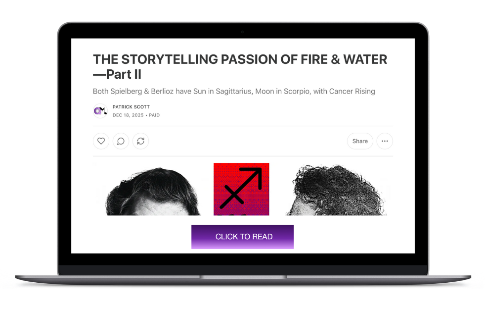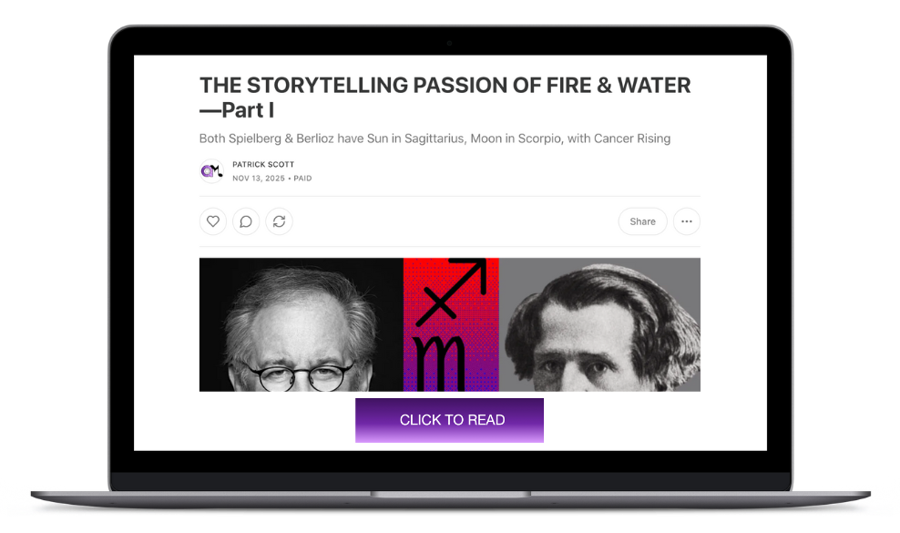 Exploring the story of composer Berlioz and filmmaker Spielberg sharing the identical BIG THREE—sun, moon, and rising sign—proved so fascinating, it took two parts to tell. Part I provided a general introduction to the matter of significance and pertinent biographical and artistic information. In Part II, I compare and contrast the astrology of these two giants by way of explaining how the interpretation of charts works in general and how their charts work specifically. With a personal side trip to Hollywood, I delve into decans, houses, and planetary placements relative to Berlioz and Spielberg—and much more. I zero-in on a genius Spielberg film and a groundbreaking Berlioz opera to illuminate two ambitious Sagittarian journeys and what makes them great.
